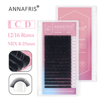 Annafris Custom Logo Zwart Mega Volume Zachte Zeer Lichte Synthetische Vezel 0.05 0.07 0.10 0.12Mm Mix Lengte Lash Extensions